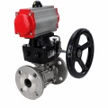Краны шаровые DN.ru BV3131P(3pc)-FP-F-ISO-H Ду15-100 Ру16-40 трехсоставные из нержавеющей стали SS304, фланцевые, полнопроходные, с пневмоприводом DN.ru PA-DA и ручным дублером MON