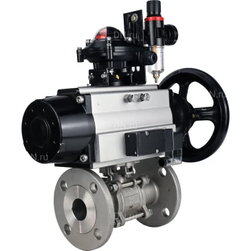 Краны шаровые DN.ru BV3131P(3pc)-FP-F-ISO-H Ду65-100 Ру16-25, трехсоставные полнопроходные фланцевые, нержавеющая сталь SS304, уплотнение - PTFE, с пн.приводом PA-DA-105-1 двойного действия, пн.распределителем 4M310-08 24В NAMUR, БКВ APL-210N, с БПВ AFC20 |
