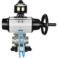 Краны шаровые DN.ru BV3232P(3pc)-FP-W-ISO-H Ду80-100 Ру25, полнопроходные, трехсоставные, нержавеющая сталь 316, уплотнение - PTFE, под приварку, с пневмоприводом PA-DA-105-1, пневмораспределителем 4V320-08 220В, БКВ APL-510N Ex