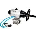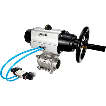 Краны шаровые DN.ru BV3232P(3pc)-FP-W-ISO-H Ду80-100 Ру25, полнопроходные, трехсоставные, нержавеющая сталь 316, уплотнение - PTFE, под приварку, с пневмоприводом PA-DA-105-1, пневмораспределителем 4V320-10 220В
