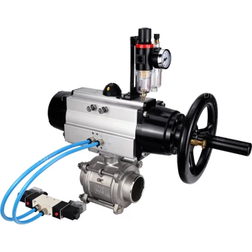 Кран шаровой DN.ru BV3232P(3pc)-FP-W-ISO-H Ду80 Ру25, полнопроходной, трехсоставной, нержавеющая сталь 316, уплотнение - PTFE, под приварку, с пневмоприводом PA-DA-105-1, пневмораспределителем 4V320-10 220В, БПВ AFC2000 |