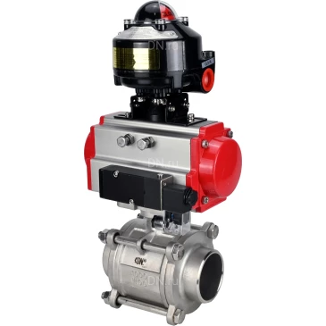 Кран шаровой DN.ru BV3232P(3pc)-FP-W-ISO-H WDVF Ду15 Ру63 полнопроходной, трехсоставной, корпус - нержавеющая сталь 316, уплотнение - PTFE, под приварку, с пневмоприводом PA-DA-052, пневмораспределителем 4М310-08 220В, БКВ APL-510N EX |