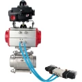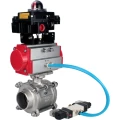 Краны шаровые DN.ru BV3232P(3pc)-FP-W-ISO-H WDVF Ду15-32 Ру63 полнопроходные, корпус - нержавеющая сталь 316, уплотнение - PTFE, под приварку, с пневмоприводом PA-DA, пневмораспределителем 4V320-10 220В, БКВ APL-410N EX