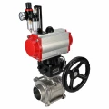 Краны шаровые DN.ru BV3232P(3pc)-FP-W-ISO-H Ду10-100 Ру63/25, полнопроходные под приварку, нержавеющая сталь SS316, уплотнение - PTFE, с пневмоприводом PA-DA двойного действия, с пневмораспределителем 4M310-08 24В, с ручным дублером MON1-250-T26-ISO, с БП