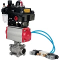 Краны шаровые DN.ru BV3232P(3pc)-FP-W-ISO-H Ду10-100 Ру63/25, полнопроходные под приварку, нержавеющая сталь SS316, уплотнение - PTFE, с пневмоприводом PA-DA двойного действия, с пневмораспределителем 4V320-08 220В, с БКВ APL-410N EX, с БПВ AFC2000