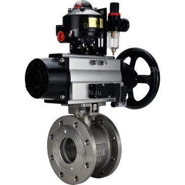 Краны шаровые DN.ru BV3232P-FP-Fb-ISO-H Ду80-100 Ру16, полнопроходные межфланцевые, нержавеющая сталь SS316, уплотнение - PTFE, с пневмоприводом PA-DA-105-1 двойного действия, с пневмораспределителем 4M310-08 220В, с БКВ APL-510N EX, с БПВ AFC2000 |