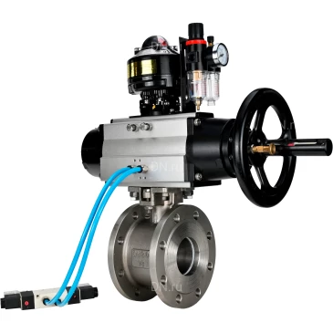 Краны шаровые DN.ru BV3232P-FP-Fb-ISO-H Ду80-100 Ру16, полнопроходные межфланцевые, нержавеющая сталь SS316, уплотнение - PTFE, с пневмоприводом PA-DA-105-1 двойного действия, с пневмораспределителем 4V320-10 220В, с БКВ APL-510N EX, с БПВ AFC2000