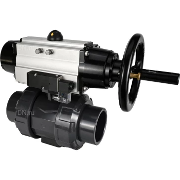 Кран шаровой DN.ru BV4242E-FP-GRM-ISO Дн32 Ру10 полнопроходной, корпус - НПВХ, шар - НПВХ, уплотнение - EPDM, с пневмоприводом PA-DA-105-1 и пневмораспределителем 4M310-08 220В