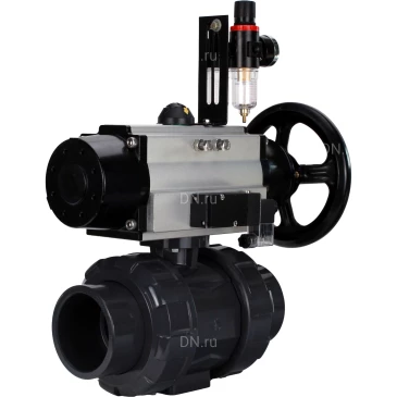 Кран шаровой DN.ru BV4242E-FP-GRM-ISO Дн15 Ру10 полнопроходной, корпус - НПВХ, шар - НПВХ, уплотнение - EPDM, с пневмоприводом PA-DA-105-1, пневмораспределителем 4M310-08 24В и БПВ AFC2000