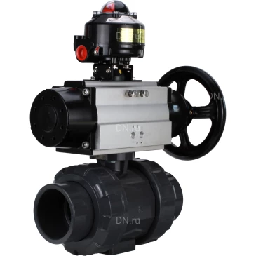 Краны шаровые DN.ru BV4242E-FP-GRM-ISO Дн15-100 Ру10 полнопроходные, корпус - НПВХ, шар - НПВХ, уплотнение - EPDM, с пневмоприводом PA-DA-105-1 и БКВ APL-510N EX