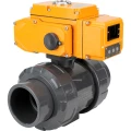 Краны шаровые DN.ru BV4242E-FP-GRM-ISO Дн15-100 Ру10 полнопроходные, корпус - НПВХ, шар - НПВХ, уплотнение - EPDM, с электроприводом DN.ru QT-N-EM-A1-220VAC-У1 c датчиком обратной связи и входным управляющим сигналом 4-20мА
