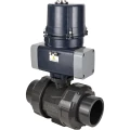 Краны шаровые DN.ru BV4242E-FP-GRM-ISO Дн15-100 Ру10 полнопроходные, клеевые с разборным муфтовым соединением, корпус - НПВХ, шар - НПВХ, уплотнение - EPDM, с электроприводом DN.ru QTSA-N-EM-O0-220VAC с пружинным возвратом