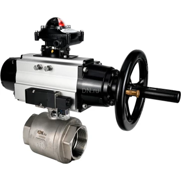 Кран шаровой DN.ru BV3232P(2pc)-FP-T-ISO-H Ду80 Ру40 полнопроходной двухходовой, нержавеющая сталь SS316, внутренняя резьба, уплотнение - PTFE, с пневмоприводом PA-DA-105-1 двойного действия, с пневмораспределителем 4M310-08 220В, с БКВ APL-210N