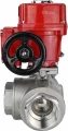 Краны шаровые нержавеющие 3-ходовые L-тип стандартнопроходные DN.RU BV3232P-SP-3WL-T-ISO Ду10-100 Ру63/40, муфтовые с 1/4-оборотным электроприводом DN.ru QT-EX-M-O2-220VAC-У1