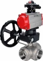Краны шаровые нержавеющие 3-ходовые L-тип стандартнопроходные DN.ru BV3232P-SP-3WL-T-ISO Ду10-100 Ру63/40, муфтовые с ISO фланцем с пневмоприводами DN.ru PA-DA, блоком концевых выключателей APL-210N и ручным дублером MON