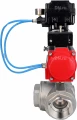 Краны шаровые нержавеющие 3-ходовые L-тип стандартнопроходные DN.ru BV3232P-SP-3WL-T-ISO PA-SA Ду10-100 Ру63/40, муфтовые с пневмоприводами DN.ru PA-DA двойного действия и электропневматическим позиционером DN.ru YT-1000RSI с обратной связью