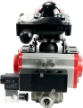 Краны шаровые нержавеющие 3-ходовые L-тип стандартнопроходные DN.ru BV3232P-SP-3WL-T-ISO PA-SA Ду10-100 Ру63/40, муфтовые с ISO фланцем с пневмоприводами DN.ru PA-SA, пневмораспределителем 4M310-08 220В и блоком концевых выключателей APL-210N