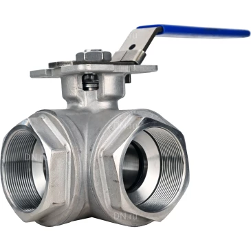 Кран шаровой DN.ru BV3232P(4pc)-SP-3WL-T-ISO-H WDVF Ду32 Ру63 стандартнопроходной, 3-ходовой L-тип, внутренняя резьба, корпус - нержавеющая сталь AISI 316, уплотнение - PTFE, с ISO-фланцем и рукояткой