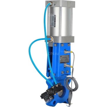 Задвижка шиберная DN.ru GVKR1331M-1W-Fb-2P Ду200 Ру10 межфланцевая, шпиндель - выдвижной, корпус - чугун GGG40, уплотнение - металл, с пневмоприводом, WENZ, пневмораспределителем 4V210-08 24В KUOIN и индукц.датчиками LJ12A3-4-Z/EX 24В