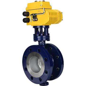 Затвор дисковый поворотный с тройным эксцентриситетом DN.ru WBV3EX-3432M-1W-F-ISO Ду80 Ру25 фланцевый, корпус - углеродистая сталь WCB, диск - нержавеющая сталь 316, METAL, с четвертьоборотным электроприводом DN.ru QT-N-015EM-O1-24VDC-У1 24В