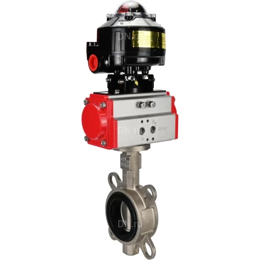 Затвор дисковый поворотный DN.ru WBV3232E-2W-Fb-H Ду80 Ру16, корпус - нержавеющая сталь 316L, диск - нержавеющая сталь 316L, уплотнение - EPDM, с пневмоприводом PA-DA-083 двойного действия, с БКВ APL-510N EX
