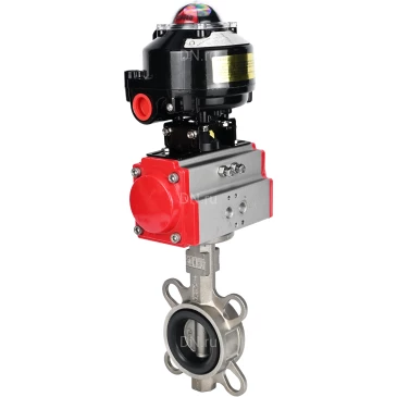 Затворы дисковые поворотные DN.ru WBV3232V-2W-Fb Ду50-300 Ру16, корпус - нержавеющая сталь 316L, диск - нержавеющая сталь 316L, уплотнение - VITON, с пневмоприводом PA-DA-052-140 и блоком концевых выключателей APL-510N-EX