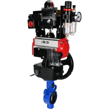 Затворы дисковые поворотные DN.ru WBV0232E-2W-Fb Ду25-32 Ру16, корпус - алюминевый сплав, уплотнение - EPDM, с пневмоприводом PA-DA, с пневмораспределителем 4М310-08 220В NAMUR, с БКВ APL-410N EX, с ручным дублером MON, с БПВ AFC2000