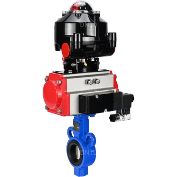 Затворы дисковые поворотные DN.ru WBV0232E-2W-Fb Ду25-32 Ру16, корпус - алюминевый сплав, диск - нержавеющая сталь 316L, уплотнение - EPDM, с пневмоприводом PA-SA с возвратными пружинами, с пневмораспределителем 4М310-08 220В NAMUR, с БКВ APL-510N-EX