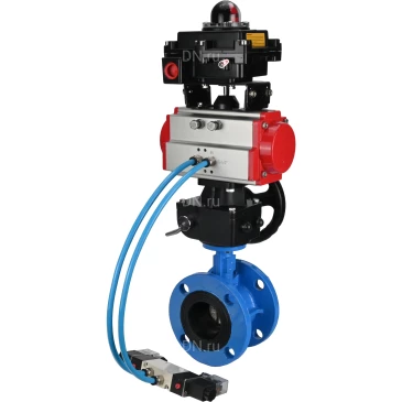 Затворы дисковые поворотные DN.ru WBV1313E-2W-F Ду50-200 Ру16 корпус - чугун GGG40, диск - чугун GGG40, EPDM, с пневмоприводом DN.ru PA-DA-XXX, пневмораспределителем 4V320-10 220В, БКВ APL-410N EX и ручным дублером MON