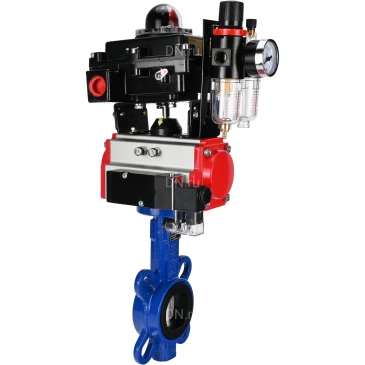 Затворы дисковые поворотные DN.ru WBV1432N-2W-Fb Ду40-300 Ру16, корпус - чугун GGG50, диск - нержавеющая сталь 316L, уплотнение - NBR, с пневмоприводом PA-DA двойного действия, с пневмораспределителем 4М310-08 24В NAMUR, с БКВ APL-410N EX, с БПВ AFC2000
