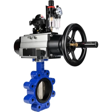 Затвор дисковый поворотный DN.ru WBV1616E-2W-Fb-H Ду150 Ру16 LUG корпус - чугун QT450, диск - чугун QT450, уплотнение - EPDM, с пневмоприводом DN.ru PA-DA-105-1, пневмораспределителем 4M310-08 24В, БКВ APL-210N и БПВ AFC2000