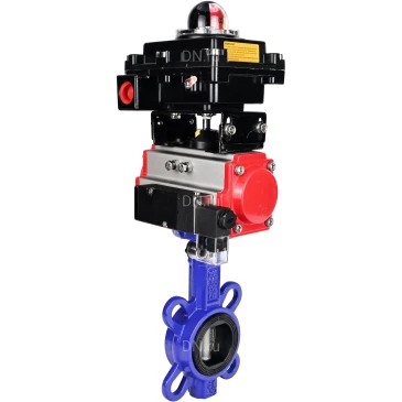 Затвор дисковый поворотный для абразивных сред DN.ru WBV1632E-2W-Fb-H Ду150 Ру16, корпус - чугун QT450, диск - нержавеющая сталь 316L, уплотнение - EPDM, с пневмоприводом PA-DA-105, пневмораспределителем DN.ru 4М310-08 24В NAMUR, БКВ DN.ru APL-410N EX