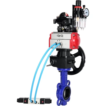 Блок подготовки воздуха AFC2000 предназначен для очистки сжатого воздуха от капельной влаги и твердых частиц, удаления конденсата, автоматического поддержания величины давления на заданном уровне, подвода смазочного материала из резервуара в поток сжатого воздуха к элементам пневмосистемы с большим диапазоном пропускной способности от 500 литров/минуту до 10 000 литров/минуту. Лубрикатор (маслораспылитель) добавляет масло вязкостью 32 мм²/с (=сСт) при 40°C в пневмосистему для дальнейшей смазки компонентов управления - пневмоцилиндров и пневмораспределителей. Блок концевых выключателей APL-210N предназначен для визуальной и электрической сигнализации конечных положений запорного органа арматуры. Устанавливается сверху на поверхность пневматического привода и соединен с валом привода - стандарт DIN. В герметичной коробке, как правило, находятся два датчика, которые отслеживают положение вала привода и сигнализируют в крайних положениях. Визуальную индикацию положения можно наблюдать на корпусе блока имеется 3D визуальный индикатор КРАСНЫЙ–ЗАКРЫТО и ЖЁЛТЫЙ-ОТКРЫТО.
