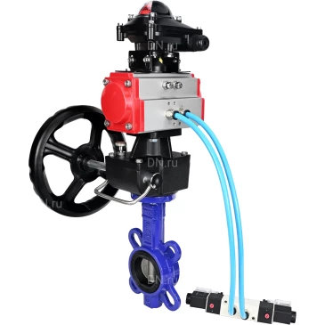 Затворы дисковые поворотные для абразивных сред DN.ru WBV1632E-2W-Fb Ду40-300 Ру16, корпус - чугун QT450, диск - нерж.сталь 316L, EPDM, с пневмоприводом DN.ru PA-DA-052-160, пневмораспределителем DN.ru 4V320-08, дублером DN.ru HDM 1-4, БКВ DN.ru APL-210N