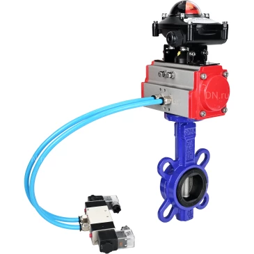 Затворы дисковые поворотные для абразивных сред DN.ru WBV1632E-2W-Fb Ду40-300 Ру16, корпус - чугун QT450, диск - нерж.сталь 316L, EPDM, межфланцевые, с пневмоприводом DN.ru PA-DA-052-160, пневмораспределителем DN.ru 4V320-10, БКВ DN.ru APL-210N