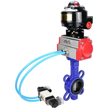 Затвор дисковый поворотный для абразивных сред DN.ru WBV1632E-2W-Fb-H Ду65 Ру16, корпус - чугун QT450, диск - нержавеющая сталь 316L, уплотнение - EPDM, с пневмоприводом PA-DA-052, пневмораспределителем DN.ru 4V320-10 220В, БКВ DN.ru APL-510N EX