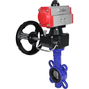 Затворы дисковые поворотные для абразивных сред DN.ru WBV1632E-2W-Fb Ду40-300 Ру16 корпус - чугун QT450, диск - нерж.сталь 316L, уплотнение - EPDM, с пневмоприводом DN.ru PA-DA-XXX и ручным дублером DN.ru MON