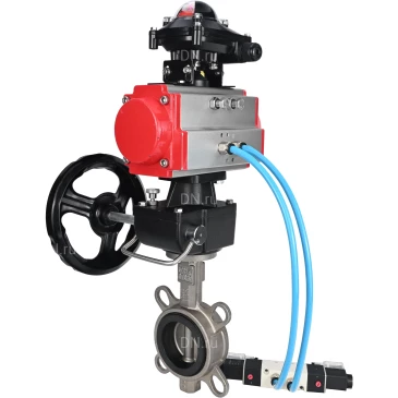 Затворы дисковые поворотные DN.ru WBV3131E-2W-Fb Ду50-250 Ру16, нержавеющая сталь 304, уплотнение - EPDM, с пневмоприводом DN.ru PA-DA-XXX, пневмораспределителем DN.ru 4V320-10 220В, БКВ DN.ru APL-210N и ручным дублером DN.ru MON
