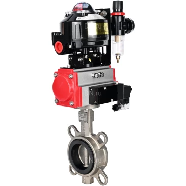 Затворы дисковые поворотные DN.ru WBV3131N-2W-Fb Ду50-250 Ру16, нержавеющая сталь 304, уплотнение - NBR, с пневмоприводом DN.ru PA-DA, пневмораспределителем DN.ru 4М310-08 24В NAMUR, БКВ DN.ru APL-510N EX и БПВ DN.ru AFC2000