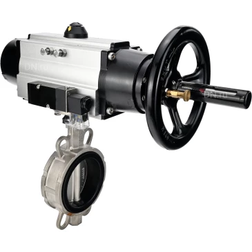 Видео затворов дисковых поворотных DN.ru WBV3131V-2W-Fb-H Ду150 Ру16 с пневмоприводом PA-DA-105-1 и пневмораспределителем 4M310-08 220В NAMUR