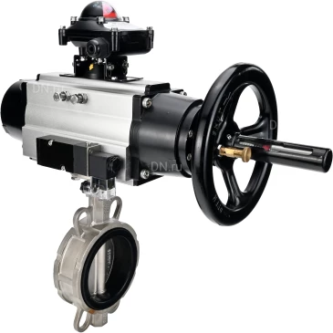 Затвор дисковый поворотный предназначен для использования в качестве запорной или регулирующей арматуры для управления потоками в системах теплоснабжения, водоснабжения, в технологических процессах пищевой, химической, нефтегазовой, целлюлозно-бумажной и других отраслях промышленности. Затворы открываются и закрываются путем поворота диска на 90°. Открытие производится поворотом рукоятки против часовой стрелки, закрытие - по часовой стрелке. Пневмопривод поворотный предназначен для автоматизации процесса управления промышленной арматурой. Блок концевых выключателей предназначен для визуальной и электрической сигнализации конечных положений запорного органа арматуры: клапана, крана или дискового затвора. Устанавливается сверху на поверхность пневматического привода и соединен с валом привода стандарт DIN. В герметичной коробке, как правило, находятся два датчика, которые отслеживают положение вала привода и сигнализируют в крайних положениях. В качестве датчиков используются микровыключатели OMRON, индуктивные датчики или герконы. Пневмораспределитель служит для изменения направления, пуска, остановки потоков сжатого воздуха в пневматической системе в зависимости от внешнего управляющего воздействия.