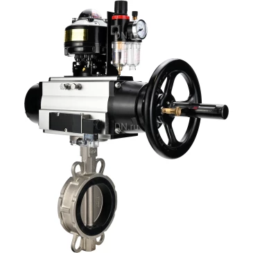 Затворы дисковые поворотные DN.ru WBV3232E-2W-Fb Ду150 Ру16, нержавеющая сталь 316L, уплотнение - EPDM, с пневмоприводом PA-DA-105-1 двойного действия, с пневмораспределителем 4М310-08 220В NAMUR, с БКВ APL-510N-EX, с БПВ AFC2000