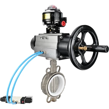 Технические параметры Затворы дисковые поворотные DN.ru WBV3232P-2W-Fb Ду125 Ру16, корпус - нержавеющая сталь 316L, диск - нержавеющая сталь 316L, уплотнение - PTFE, с пневмоприводом PA-DA-105-1 двойного действия, с пневмораспределителем 4V320-08 220В, с БКВ APL-510N-EX:
