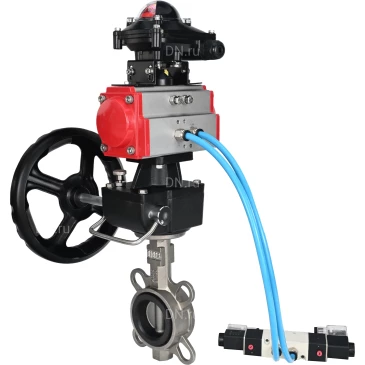 Затвор дисковый поворотный DN.ru WBV3232V-2W-Fb-H Ду300 Ру16, нержавеющая сталь 316L, уплотнение - VITON, с пневмоприводом PA-DA-140, с пневмораспределителем 4V320-10 220В, БКВ APL-210N, ручным дублером MON4-1200-T54-ISO