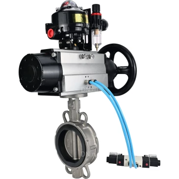 Затворы дисковые поворотные DN.ru WBV3232V-2W-Fb Ду150 Ру16, нержавеющая сталь 316L, уплотнение - Viton, с пневмоприводом PA-DA-105-1 двойного действия, с пневмораспределителем 4V320-10 220В, с БКВ APL-510N-EX, с БПВ AFC2000