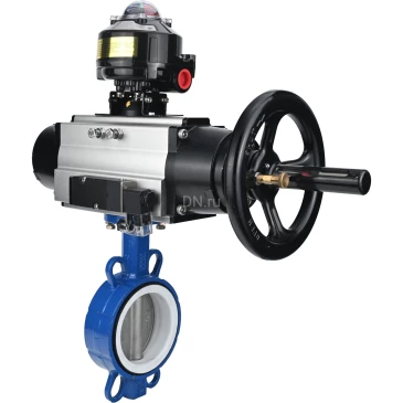 Затворы дисковые поворотные DN.ru WBV3432P-2W-Fb Ду125 Ру16, корпус - углеродистая сталь WCB, диск - нержавеющая сталь 316L, уплотнение - PTFE, с пневмоприводом PA-DA-105-1 двойного действия, с пневмораспределителем 4М310-08 220В NAMUR, с БКВ APL-510N-EX