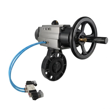 Затворы дисковые поворотные DN.ru WBV4242E-2W-Fb-ISO Дн50-200 Ру10 межфланцевые, корпус - НПВХ, диск - НПВХ, уплотнение - EPDM, с пневмоприводом PA-DA-105-1 и пневмораспределителем 4V320-10 AC220V